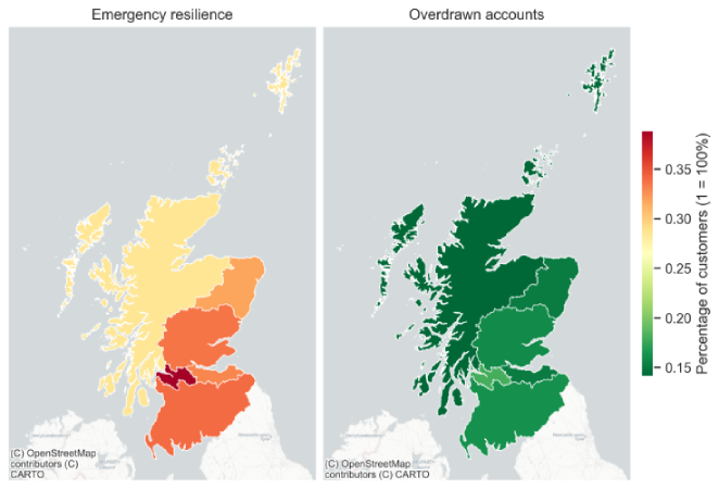 We examine the financial health of UK population by analysing two main indicators from Smart Data Foundry’s data catalogue: overdrawn accounts and emergency resilience.
