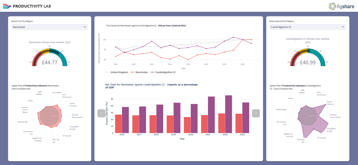 The data in this tool is sourced from The Producitivity Data Lab's ITL3 Scorecard series. Any visualisations produced by the tool can be saved as a png by clicking the camera icon in the top right that appears when hovering over them.